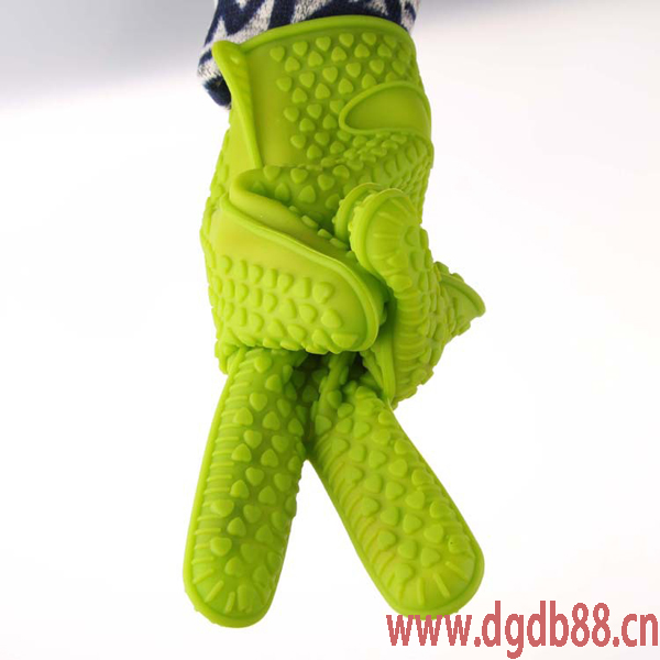 矽膠手套:英文名sillcone glove,材質是環保矽膠。區別於常規手(shǒu)套的手部(bù)保暖和勞動防護功效,矽膠手套作用主要定位在隔熱,防(fáng)燙傷(shāng)。適用於家庭廚房以及蛋糕烘(hōng)焙行業。製造工藝為,油(yóu)壓機高(gāo)溫硫化成型。