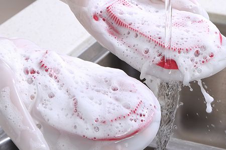 矽膠手套在人們日常生活中又(yòu)是一個應用非常廣泛的領域,它除了具有防燙、保溫、耐高溫等功能外,還可以用來清洗餐具、廚具以及其它家務活的清潔,而且還可以起到勞動保護的作用。有些(xiē)特製的矽膠手套(tào),在手(shǒu)掌(zhǎng)內側采用毛(máo)刺形(xíng)狀設計,不僅可以把掉下來的(de)頭發卷起(qǐ)來,還可以用來為寵物或嬰兒搓澡,非常實用。